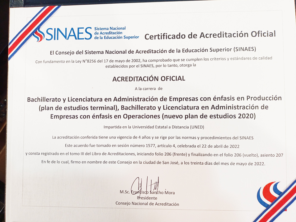 Es requisito poseer el grado de bachillerato en Administración de Empresas con énfasis en Operaciones de la UNED.
